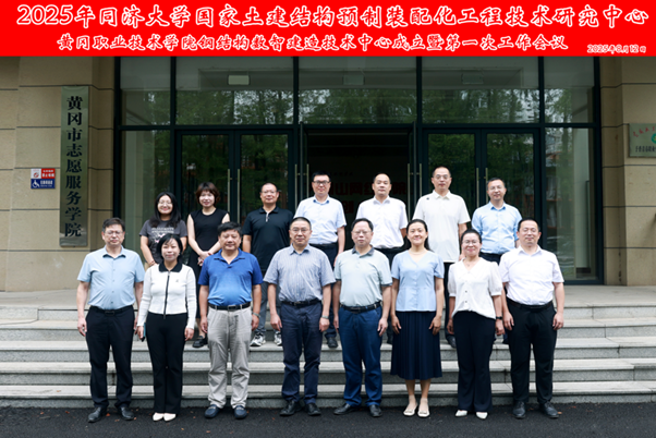 8月12日,同济大学国家土建结构预制装配化工程技术研究中心(以下简称“中心”)与湖北省黄冈职业技术学院(以下简称“黄冈职院”)联合共建的钢结构数智建造技术中心正式揭牌成立,并顺利召开首次工作会议。黄冈职院校党委委员、副校长周常青,中心副主任李元齐,湖北省装配式绿色建筑技术创新中心常务副主任刘晓敏,黄冈职院教务处处长陈彦霖、科研处副处长夏文秀、建筑学院班子成员和技术中心团队成员参加了活动。