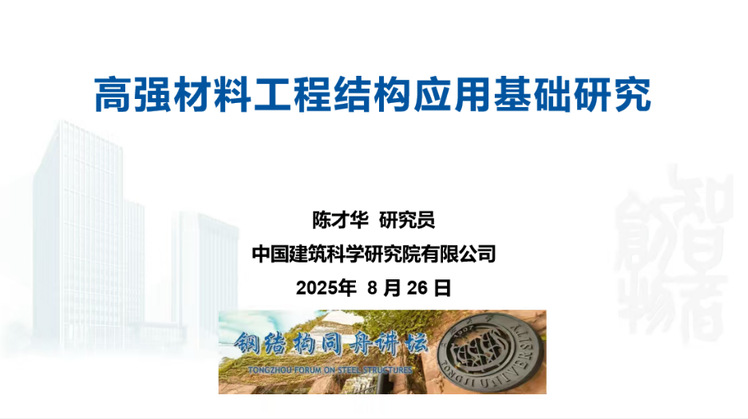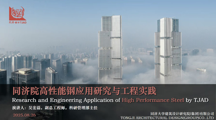 2025年8月26日19:00,由建筑钢结构教育部工程研究中心和国家土建结构预制装配化工程技术研究中心主办、《建筑钢结构进展》编辑部和高性能钢结构国际研究中心(HiPerSTEEL International Research Center)协办的钢结构同舟讲坛系列公益讲座第三季(工程设计大师季)第五期同济大学建筑设计研究院(集团)有限公司集团副总工程师、科研管理部主任吴宏磊作了同济院高性能钢应用研究与工程实践的报告,中国建筑科学研究院研究员兼中国建筑学会建筑结构分会秘书长陈才华作了高强材料工程结构应用基础研究的报告。